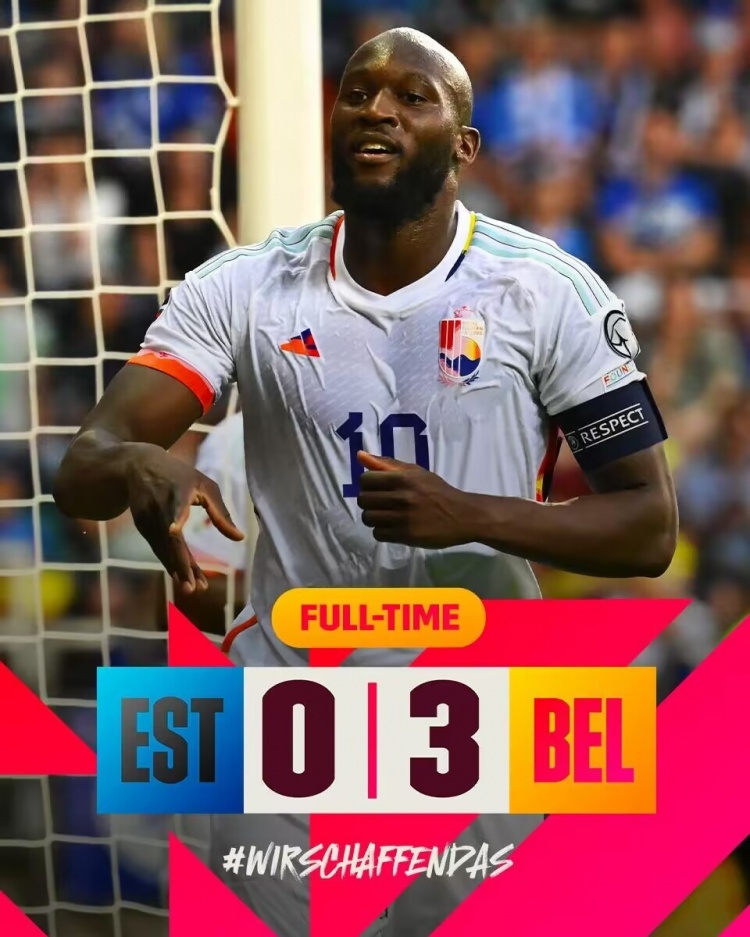 6月21日讯北京时间6月21日凌晨2:45,欧洲杯预选赛F组,比利时客场对战爱沙尼亚。上半场,卢卡库抢点垫射破门为比利时首开记录,随后接泰特横传推射破门完成梅开二度;下半场,卡拉斯科助攻巴卡约科破门锁定胜局!全场比赛结束,比利时3-0爱沙尼亚!