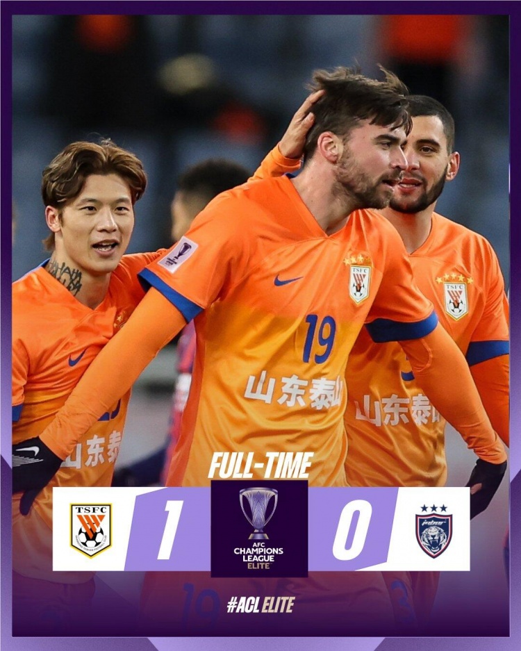 亚冠-泰山全场1射正1-0柔佛重返晋级区 泽卡制胜毕津浩离谱失空门