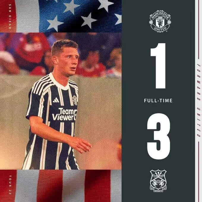友谊赛-胡拉多破门戈尔飞铲染红 十人曼联1-3雷克瑟姆