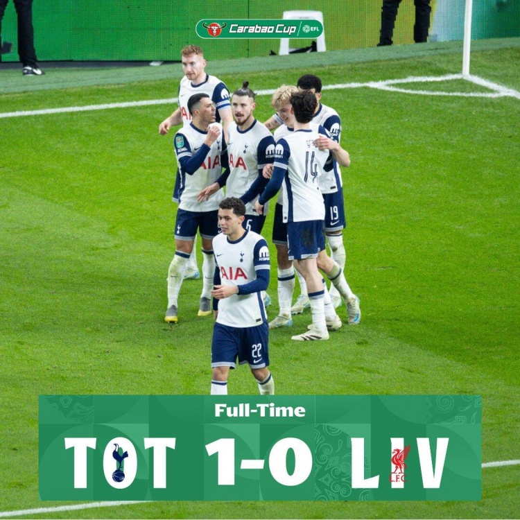 终结红军24场不败!热刺联赛杯1-0利物浦占先机 贝里瓦尔制胜