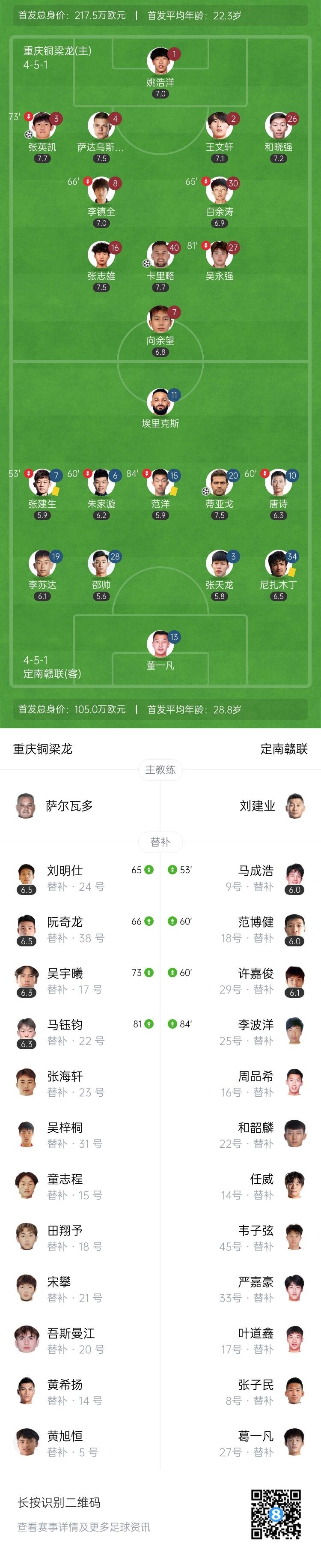 中甲-重庆铜梁龙2-1定南赣联先赛4分领跑 蒂亚戈世界波卡里略头槌