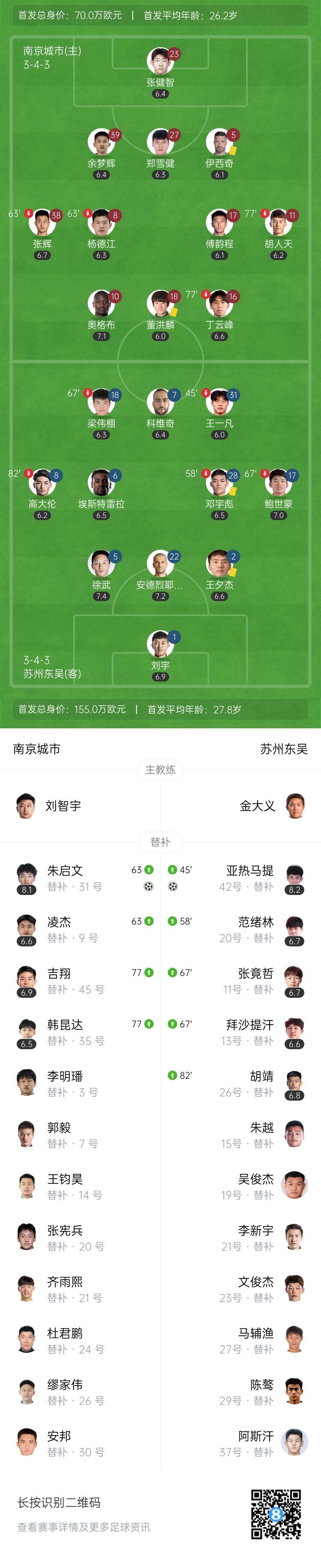 伤停补时4分钟。全场比赛结束,南京城市2-1苏州东吴。