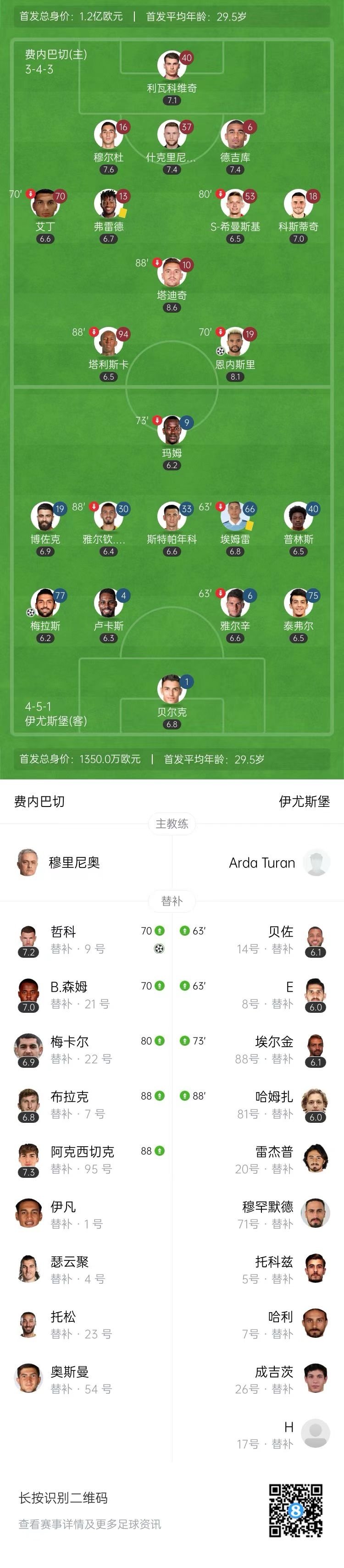 第84分钟,费内巴切反击,哲科带球单挑梅拉斯,过掉防守面对出击的门将挑射破门,费内巴切锁定胜局,2-0!↓