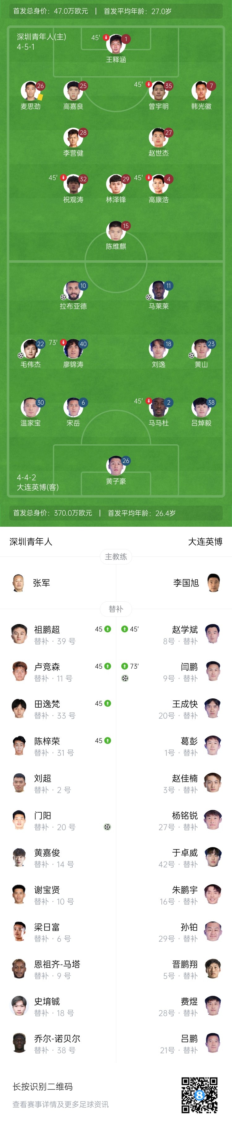 【双方首发以及换人信息】