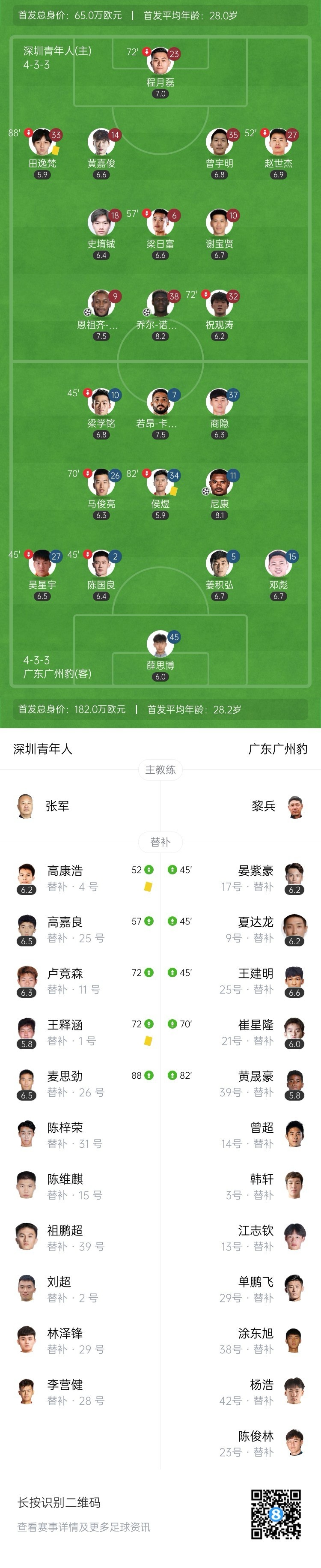 近3轮2负!广州豹1-2深圳青年人位居第四 尼康破门难救主