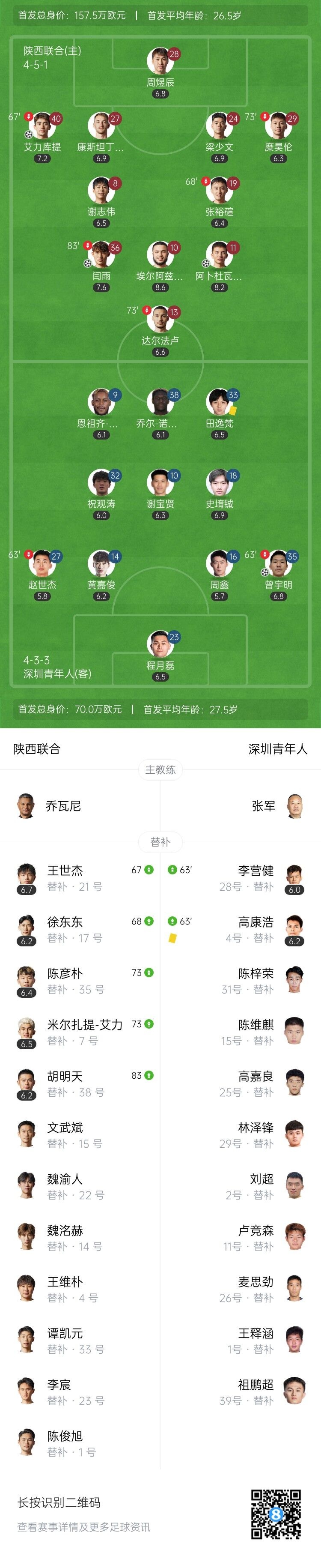 伤停补时6分钟。全场比赛结束,陕西联合3-2深圳青年人。