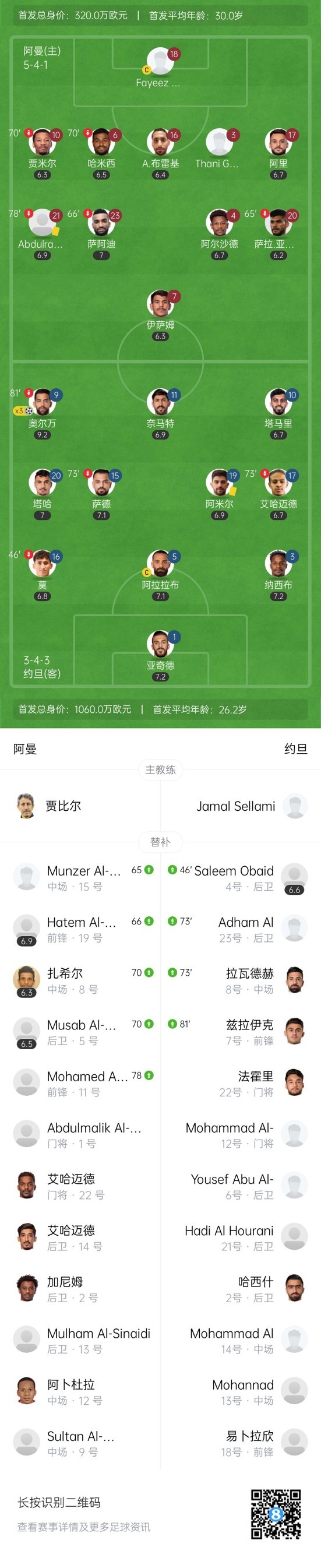 上半场补时3分钟,阿曼0-1约旦。