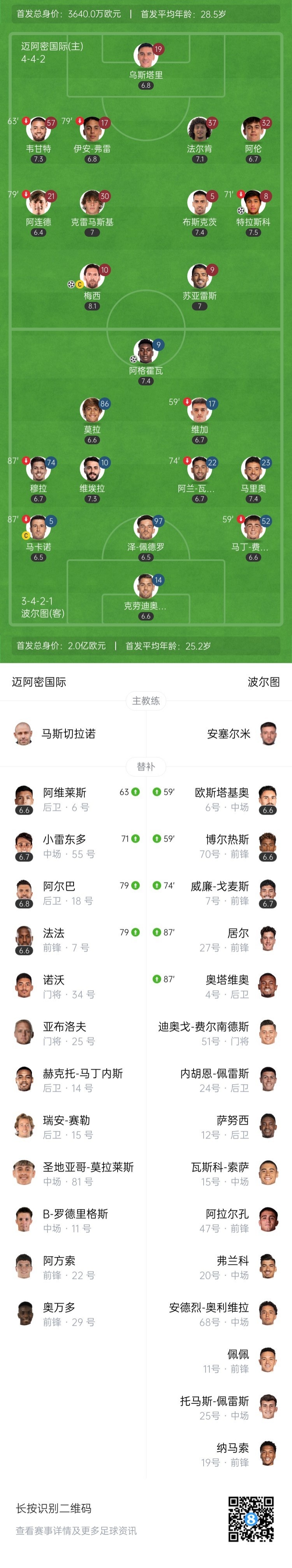 【双方首发及换人信息】