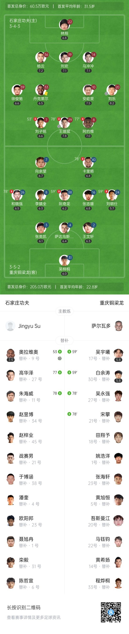 双方首发以及换人信息: