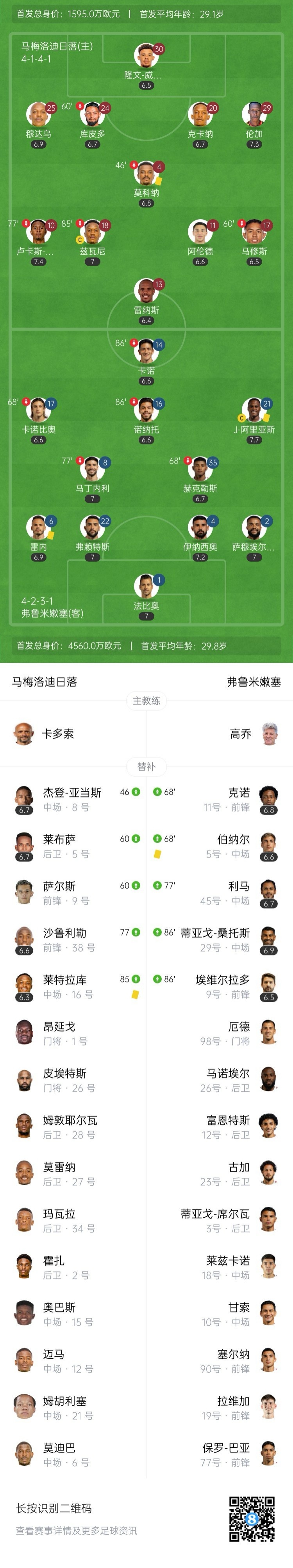 第82分钟,马梅洛迪日落任意球传中被解围。↓