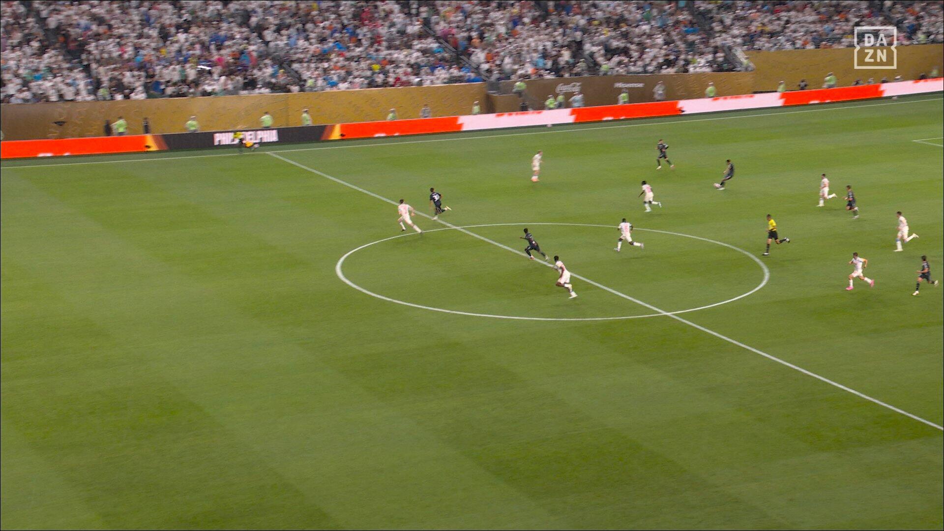 第40分钟,皇马打出一次反击,贝林厄姆中场送出直塞,维尼修斯得球后突破到禁区弧顶起脚低射破门,皇马1-0领先!↓