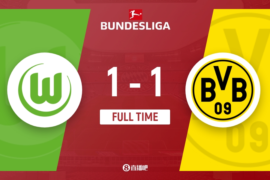 全场比赛结束,多特蒙德1-1沃尔夫斯堡。