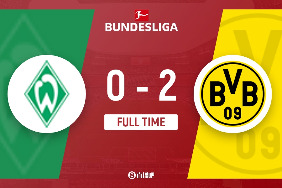全场比赛结束,多特客场2-0击败不莱梅。