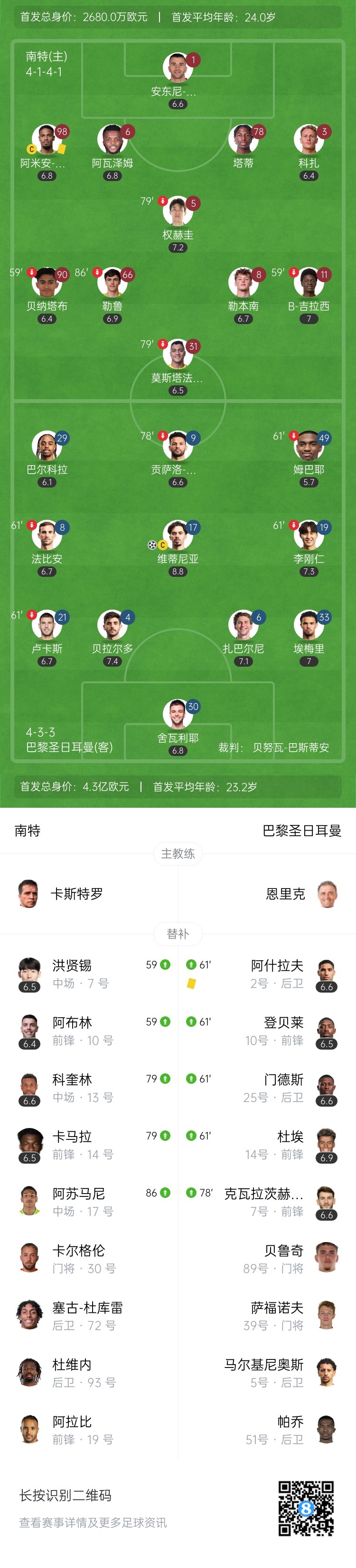 开门红!巴黎大轮换1-0小胜南特 维蒂尼亚远射制胜门德斯献助攻