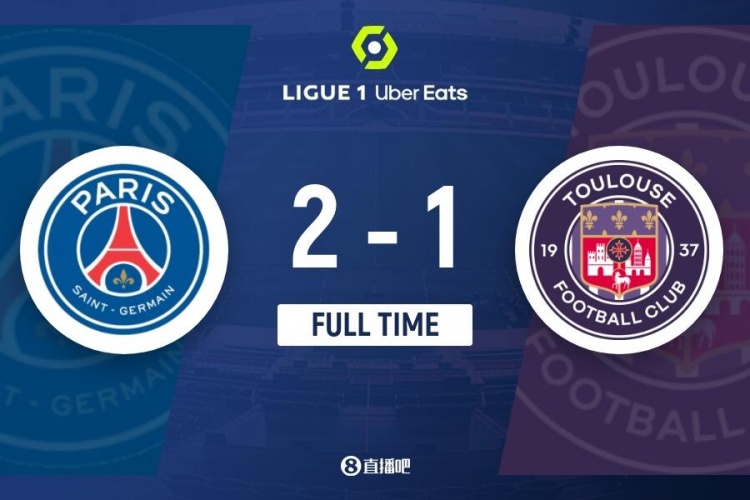 全场比赛结束,巴黎圣日耳曼2-1图卢兹。
