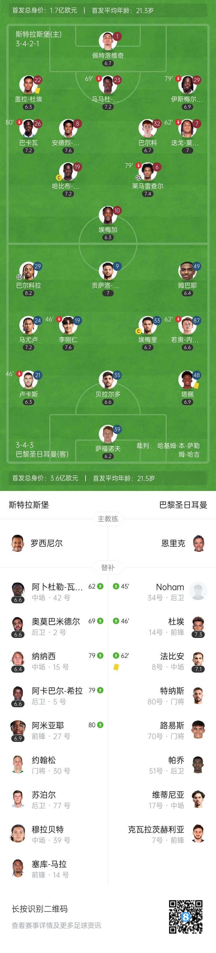 第19分钟,斯特拉斯堡左侧角球开出,萨尔头球一蹭,卢卡斯门前不慎自摆乌龙,斯特拉斯堡1-0巴黎圣日耳曼。↓