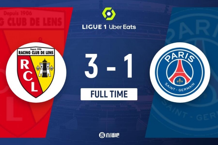 下半场伤停补时5分钟,全场比赛结束,最终巴黎圣日耳曼1-3朗斯。