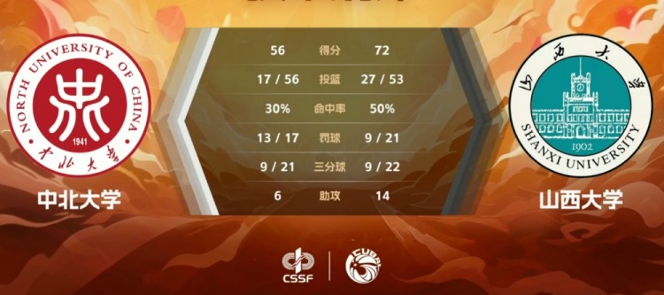 末节之争双方状态相当,乃木达越战越勇再度命中三分为山西大学守住两位数领先;中北大学虽然也有着不错进攻但无法限制对手导致分差高居不下,末段乃达木再度命中三分,分差拉大至16分也彻底杀死比赛悬念。最终,山西大学72-56击败中北大学杀入半决赛,同时也拿到西北赛区第二张全国大赛的门票。