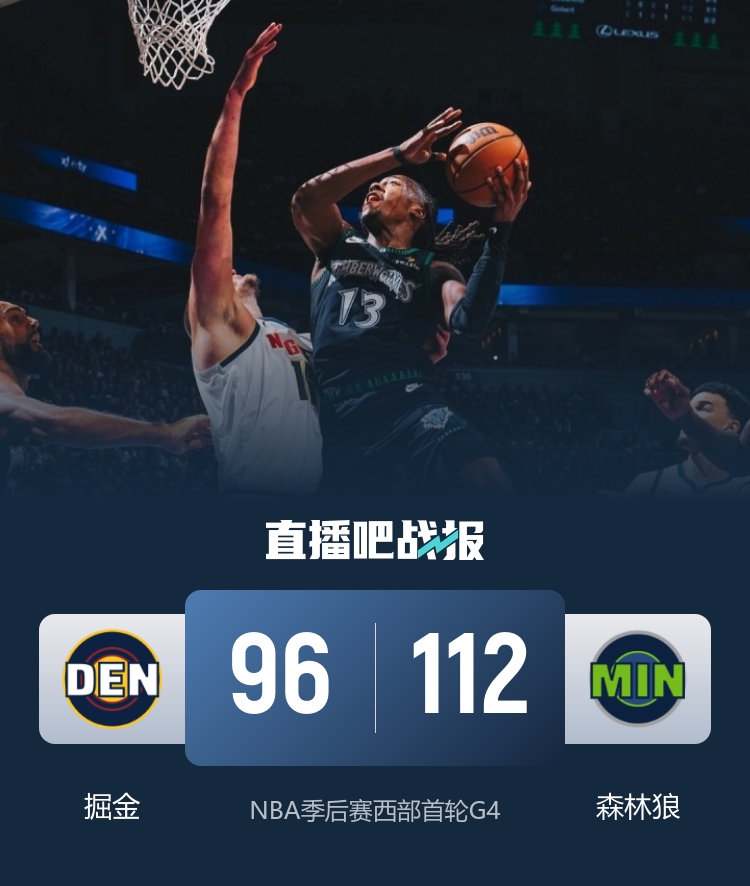 森林狼力克掘金3-1 道苏姆生涯新高43分 迪文华子伤退 约基奇驱逐