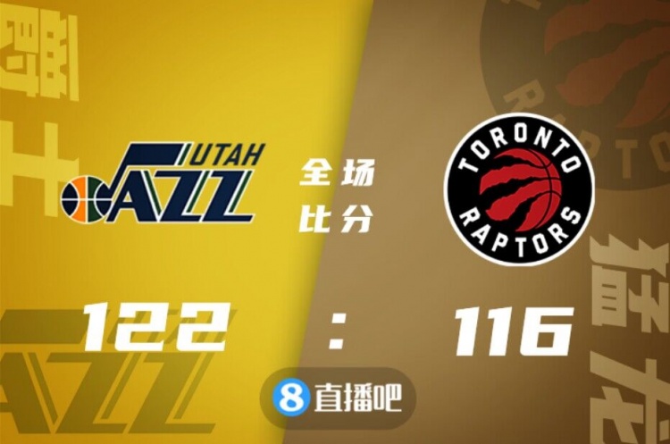 此役珀尔特尔迎来回归猛龙首秀,比赛开打后猛龙率先找到节奏,西亚卡姆连中三分单节砍下14分,范弗里特和阿丘瓦续上火力,首节结束时猛龙暂时领先6分,次节回来,爵士进攻回暖持续追分,多点开花的他们不断迫近比分,西亚卡姆里突外投率队守住优势,半场战罢,猛龙依然领先3分。下半场回来,双方你来我往继续缠斗,中段爵士进攻突然断电,猛龙一波10-0拉开比分,三节结束后猛龙已经领先13分,末节上来,场上形势风云突变,决胜时刻爵士轰出17-3攻击波一举反超,猛龙连续进攻不中,塞克斯顿和塔克连中罚球终结悬念,最终爵士122-116逆转对手。