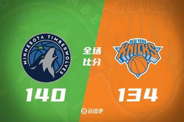 比赛开场,森林狼进攻效率极高,开场连续10投全中,逐渐拉开比分,领先到两位数,次节森林狼延续进攻手感,普林斯半场8投7中砍下20分,但兰德尔同样状态火热,半场砍下26分帮助尼克斯紧咬比分,半场结束森林狼79-70领先。易边再战,森林狼进攻效率下降,兰德尔则在进攻端予取予求,单节10投9中得到25分,帮助尼克斯追上并一度反超比分,两队陷入拉锯战,三节结束尼克斯仅落后1分。末节回来,比赛陷入胶着,两队交替领先,不过终场结束前尼克斯连续犯错,森林狼通过罚球将比分拉开,尼克斯无力再追上比分,最终森林狼140-134客场险胜尼克斯,兰德尔空砍57分。