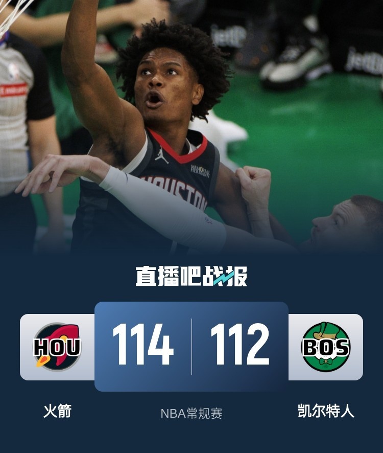 比赛开始,凯尔特人率先发力打出14-5的开局,火箭加强防守利用反击回敬14-0的进攻狂潮,狄龙连中三分,凯尔特人多点开花给出回应,双方持续缠斗,半场战罢火箭54-52领先凯尔特人。易边再战,狄龙延续火力又是连中三分,凯尔特人连投带罚完成反超,末节凯尔特人持续发力扩大领先,火箭轰出13-0强势反超,双方争夺陷入白热化,关键时刻阿门单打绝杀,火箭114-112凯尔特人险胜过关。