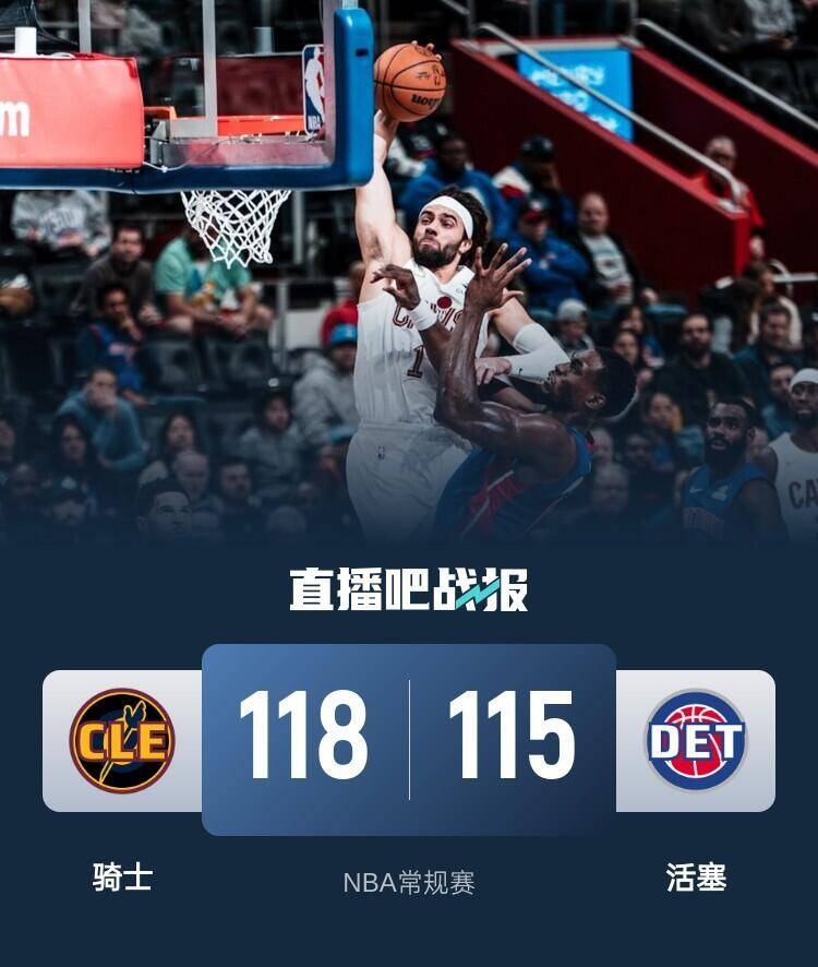 🏀加兰三分绝杀!莫布里30+9+7+4帽 CC38+7+9+4断 骑士险胜活塞