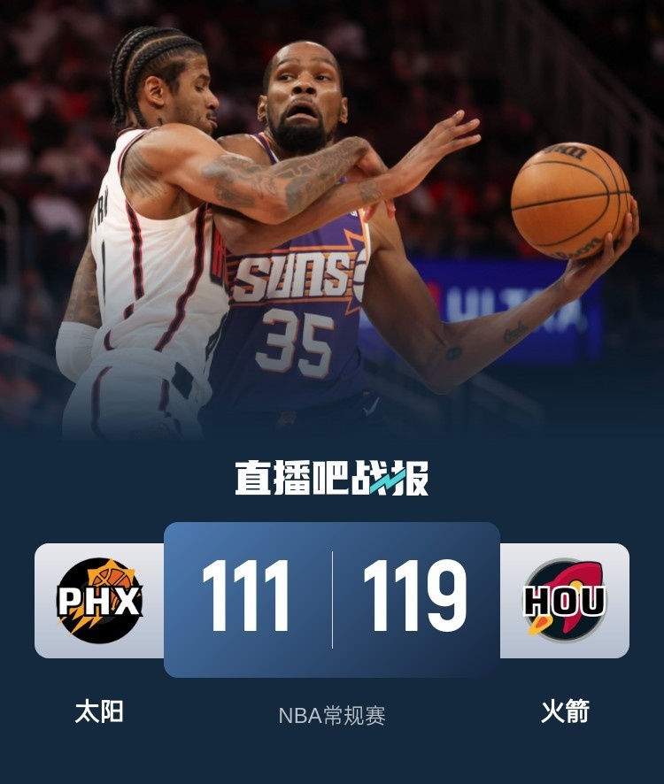 🏀伊森25+9 杜兰特37+9 火箭末节爆发逆转送太阳3连败