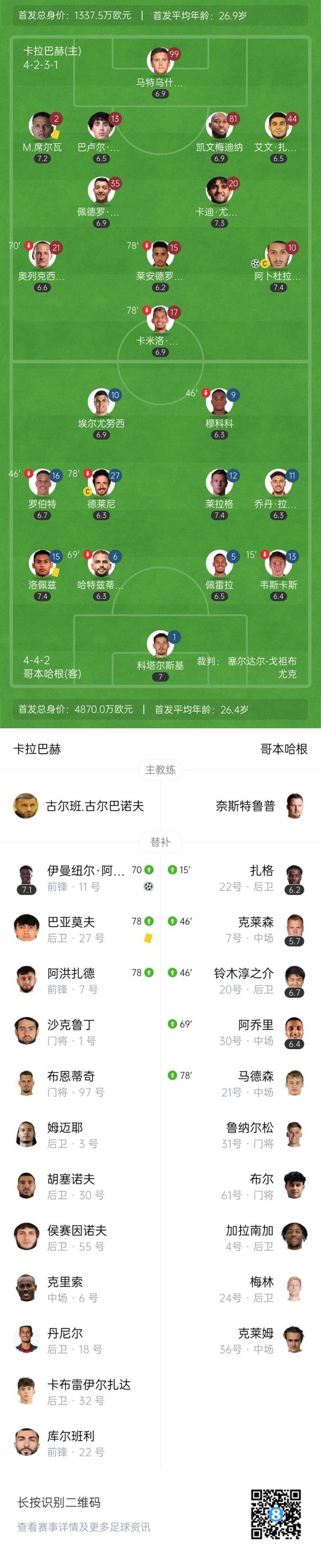最终,卡拉巴赫2-0哥本哈根。