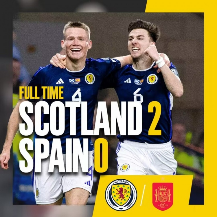 欧预赛-麦克托米奈连场双响罗伯逊助攻 西班牙0-2苏格兰