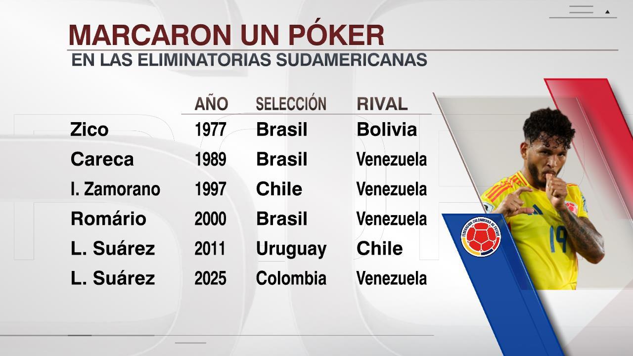 北京时间9月10日上午,南美世预赛,哥伦比亚客场对阵委内瑞拉,最终哥伦比亚6-3击败委内瑞拉,哥伦比亚前锋路易斯-苏亚雷斯完成大四喜,据统计,他是南美世预赛第6名达成大四喜的球员。