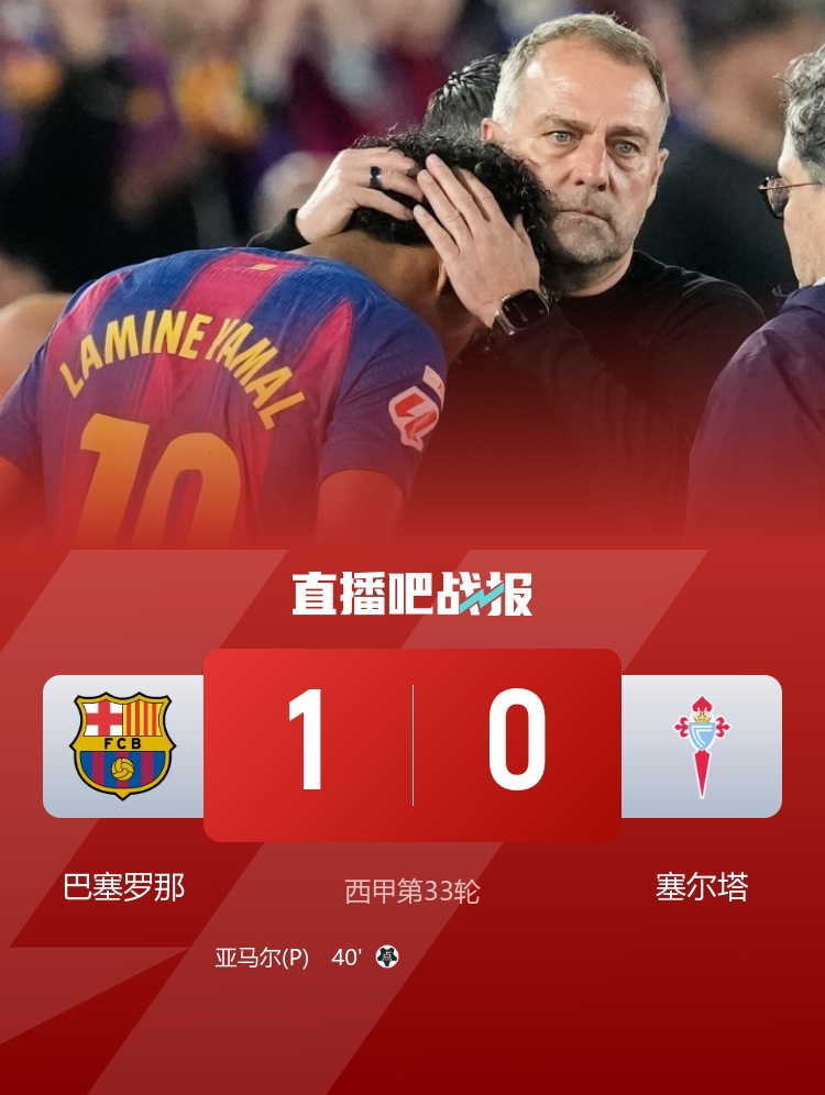 9分领跑!巴萨1-0塞尔塔联赛8连胜 亚马尔点射后伤退坎塞洛伤退