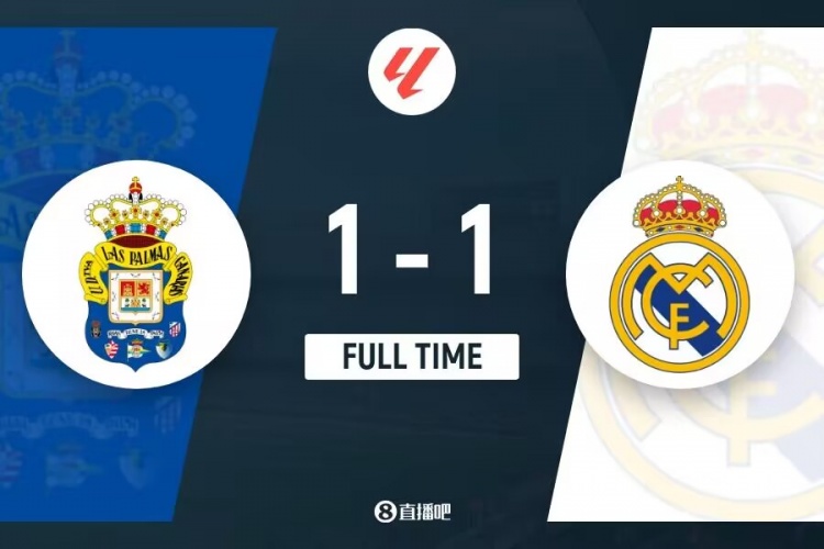 下半场补时5分钟。最终全场比赛结束,拉斯帕尔马斯1-1皇家马德里。