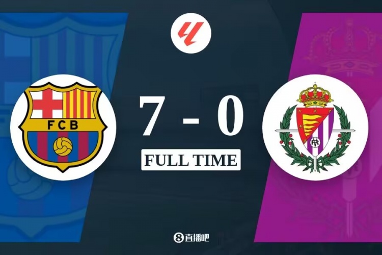 全场比赛结束,巴萨7-0大胜巴拉多利德。