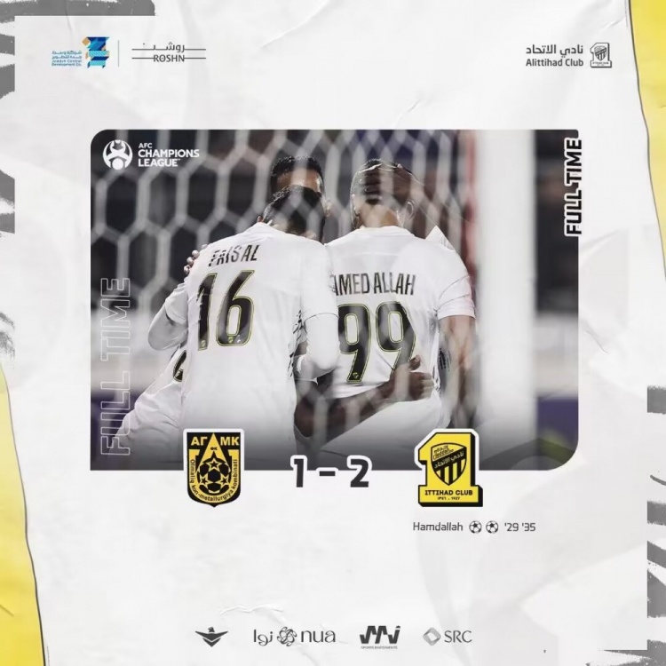 全场比赛结束,吉达联合2-1阿尔马雷克。
