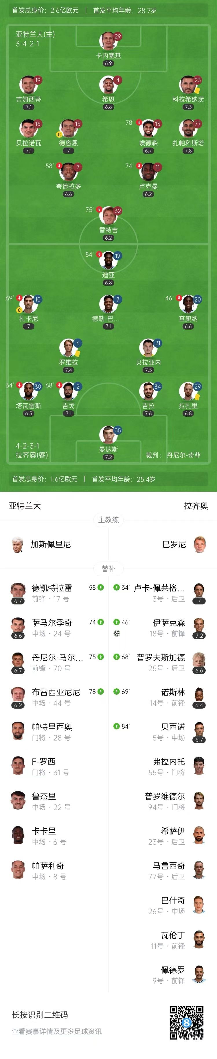 落后榜首10分!亚特兰大0-1拉齐奥遭3连败 伊萨克森替补建功