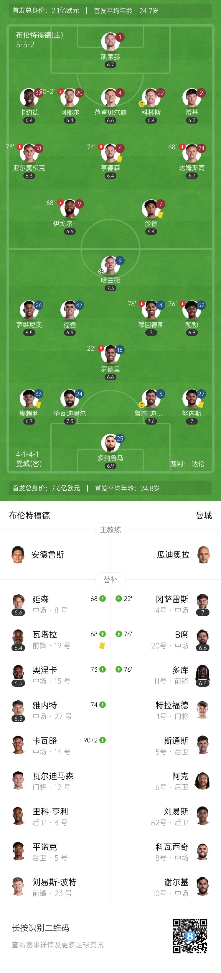 升第5!曼城1-0布伦特福德 哈兰德破门9球领跑射手榜 罗德里伤退