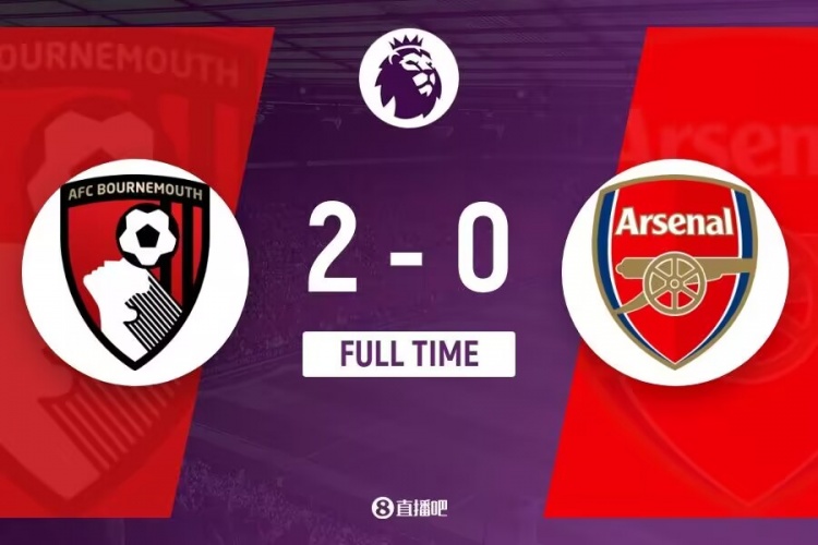 全场比赛结束,阿森纳0-2伯恩茅斯。