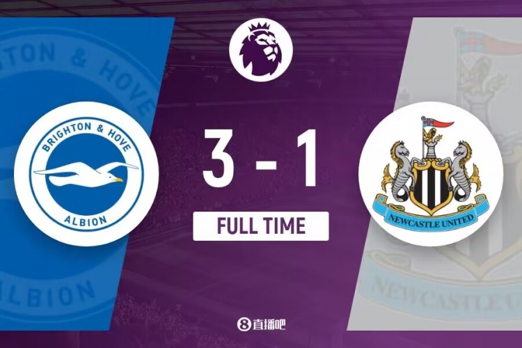 伤停补时2分钟。全场比赛结束, 纽卡斯尔1-3布莱顿。
