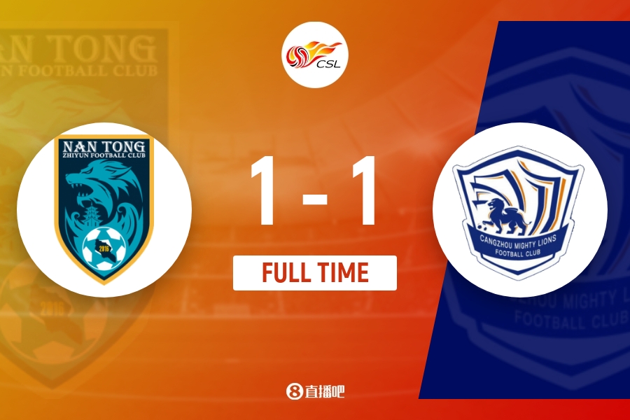 全场比赛结束,南通支云1-1战平沧州雄狮。