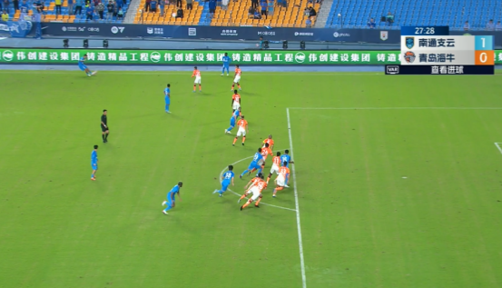 第26分钟,南通支云左路定位球机会!皮球开到门前,前点郑浩乾包抄破门!南通支云1-0领先青岛海牛↓