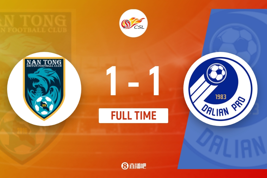 全场比赛结束,南通支云1-1战平大连人。