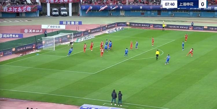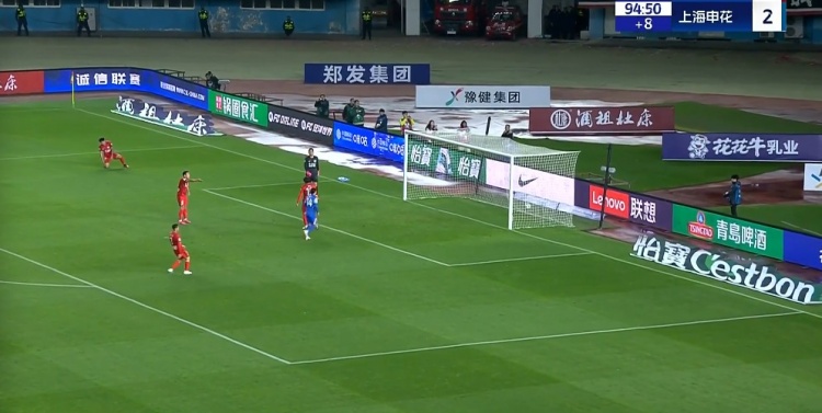 下半场补时8分钟。最终全场比赛结束,河南1-3申花。