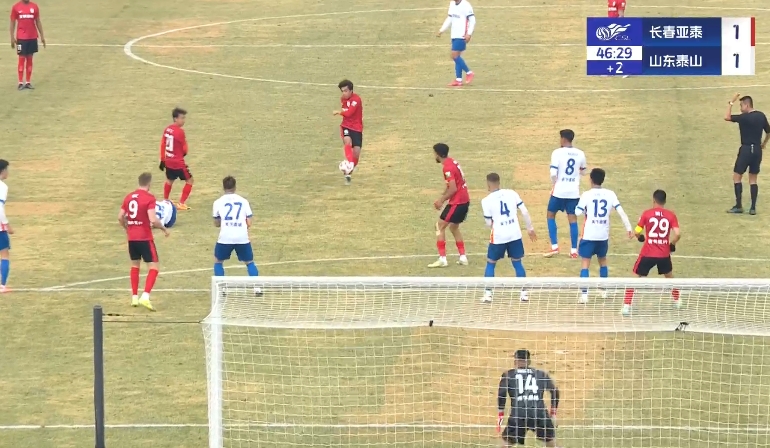 全场比赛结束,山东泰山客场2-1战胜长春亚泰。