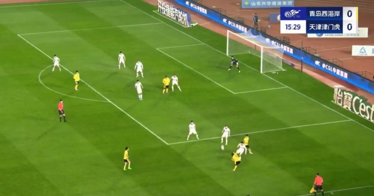 张修维外脚背直塞策动+抢点破门,阿齐兹助攻!西海岸扳平!第33分钟,张修维外脚背精彩直塞到右路,阿齐兹低平球传中到门前,张修维迅速插上抢点铲射入网,青岛西海岸1-1天津津门虎!↓