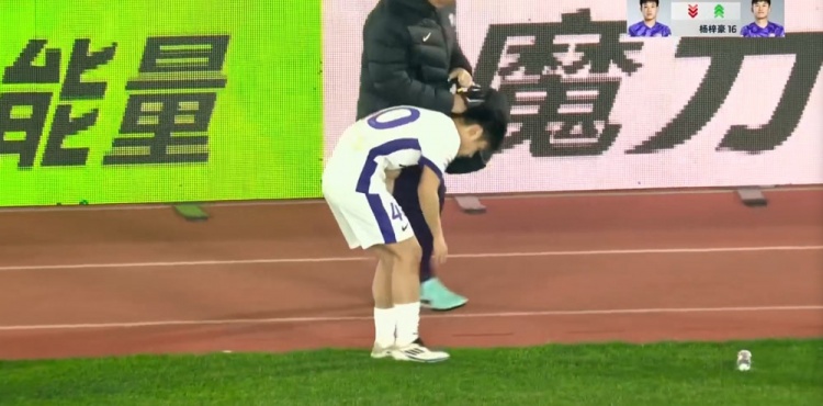 杨帆伤退!第65分钟,杨帆争顶时落地受伤,随后被担架抬出场外。↓