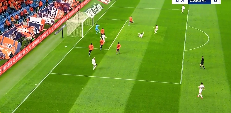 第26分钟,蓉城禁区右路挑高球送到门前,德尔加多近距离头球顶高。↓