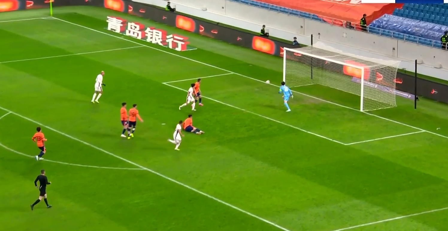 第41分钟,青岛角球机会,杨帅前点头球攻门击中边网。↓