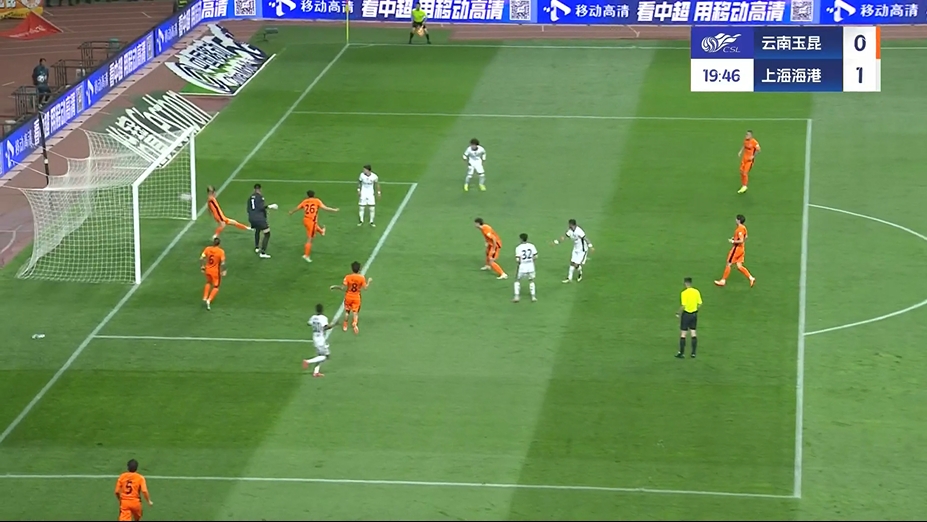 玉昆再追一球!恩里克本场传射!第90+1分钟,佩德罗-恩里克左路传中,无人盯防的孙学龙门前抢点头球破门!通过5分钟长时间VAR核实,裁判吹罚进球有效,云南玉昆2-3上海海港!↓