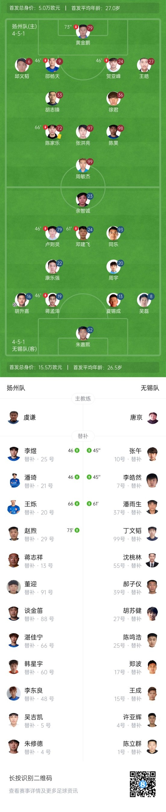 27063人现场观战!无锡2-0客胜扬州取两连胜,扬州遭遇两连败